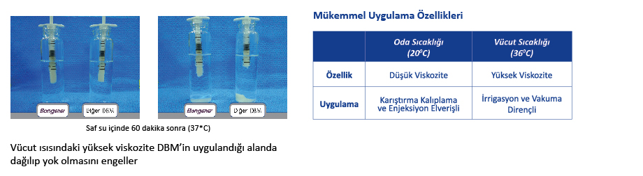 Vücut ısısındaki yüksek viskozite DBM’in uygulandığı alanda dağılıp yok olmasını engeller