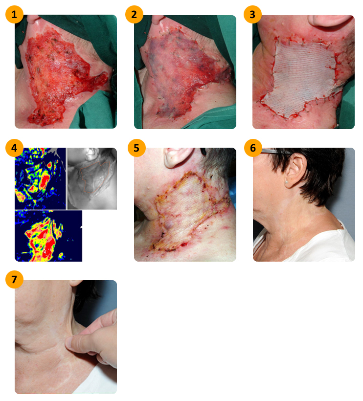 Klinik sonuçların bir örneği olan aşağıdaki hastada skarlaşmanın derecesi ve iyileşme süreci gösterilmiştir (ref 4, 5, 6) :